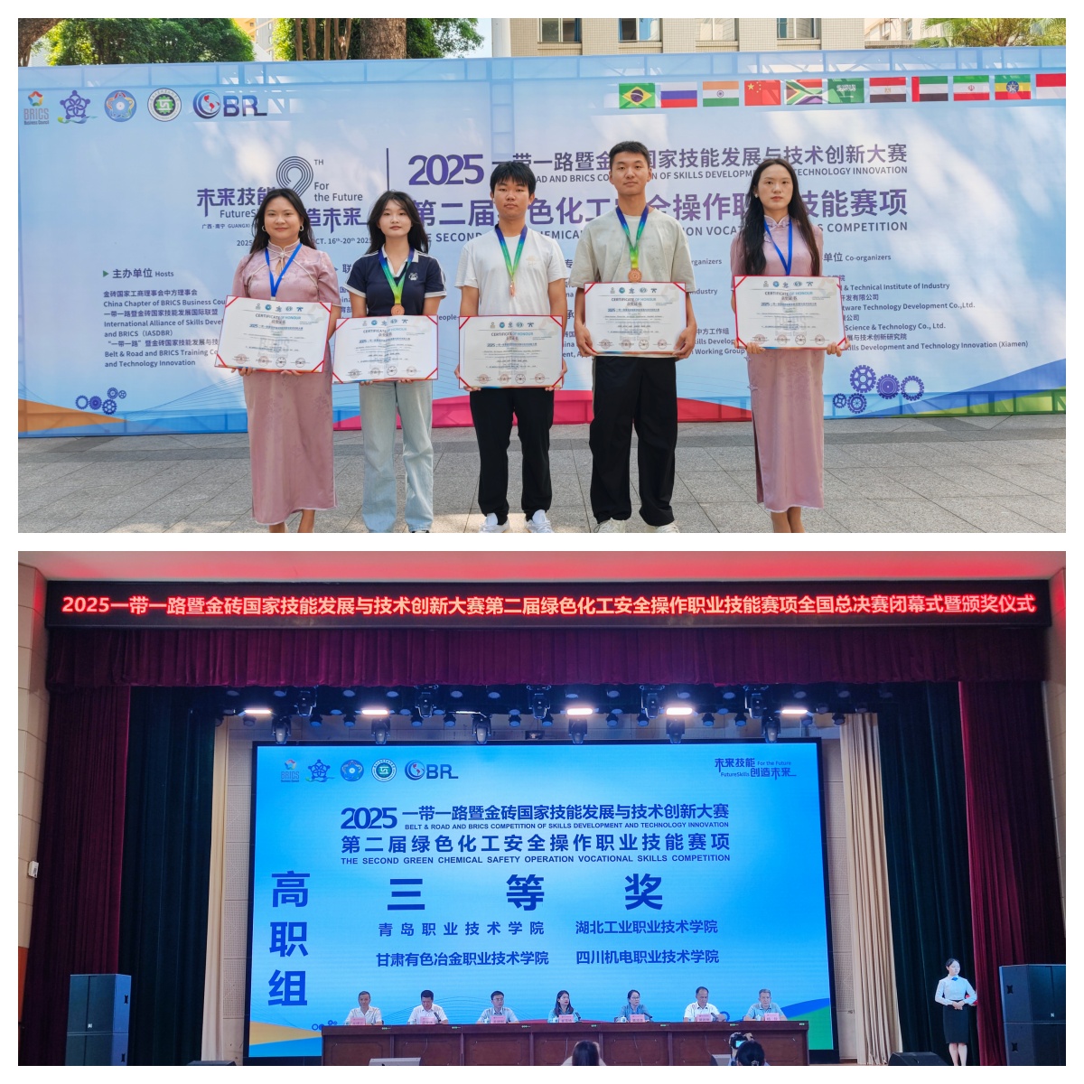 (冶金与材料学院胡佩瑶 学生郑洪)日前,2025年“一带一路暨金砖国家技能发展与技术创新”第二届绿色化工安全操作职业技能大赛落下帷幕,学校冶金与材料学院学生张君松、钟玉林、古越阳组成的竞赛团队斩获三等奖。