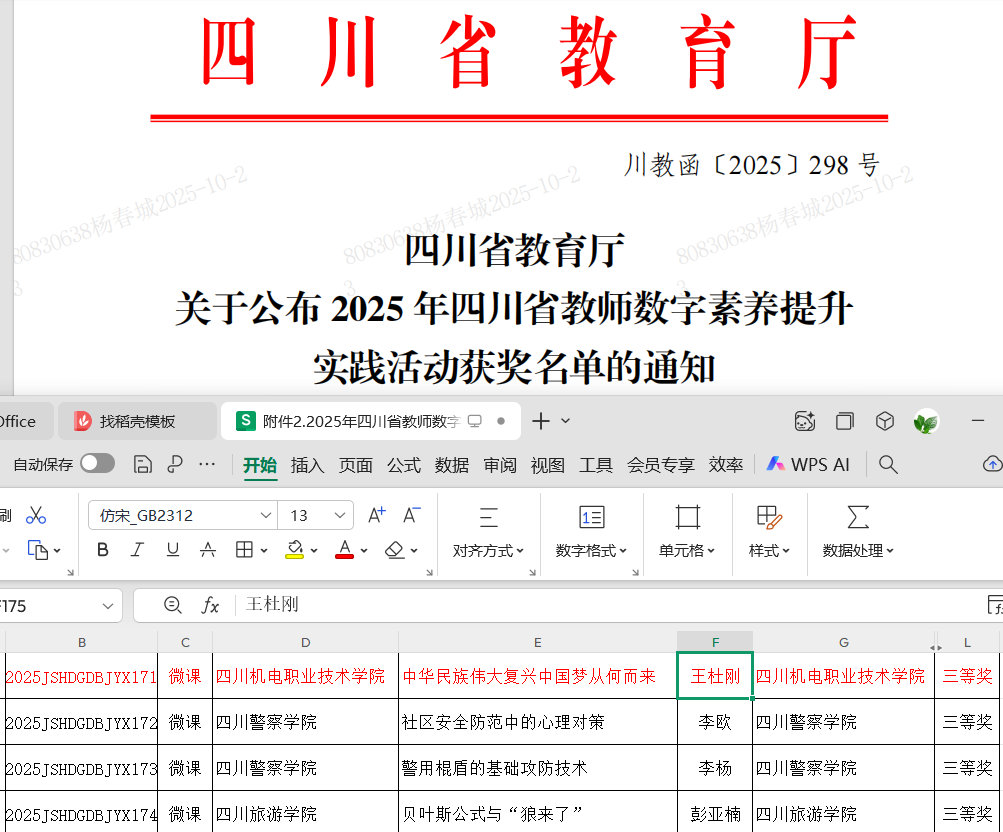 (管理学院王杜刚)近日,四川省教育厅发布《关于公布 2025 年四川省教师数字素养提升实践活动获奖名单的通知》,我校管理学院王杜刚老师凭借微课作品《中华民族伟大复兴中国梦从何而来》,在常规项目高等教育组评选中脱颖而出,荣获四川省三等奖,充分展现了我校教师在数字教学领域的扎实功底与创新能力。