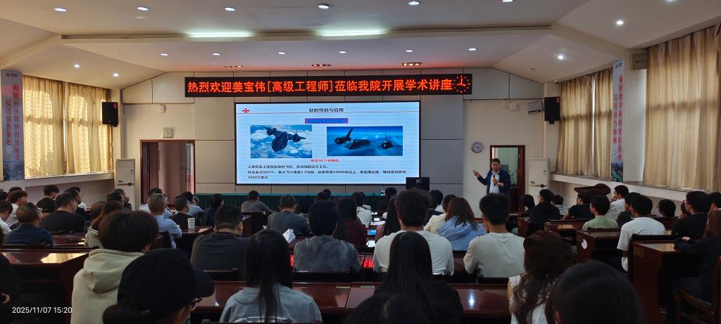 11月7日,姜宝伟以《海绵钛生产工艺及产品应用》为题,为学校冶材学院化工智能制造技术专业、材料成型及控制技术专业学生作专题讲座。他结合在攀钢集团多年行业实践经验,系统介绍了海绵钛在航空航天、医疗器械等高端领域的应用及全国产业生产现状,深入剖析了生产工艺中的核心技术难点,案例翔实、内容生动。许多同学表示,讲座打通了理论与产业的壁垒,让自己对专业前沿有了更直观的认识,也明确了后续学习方向。