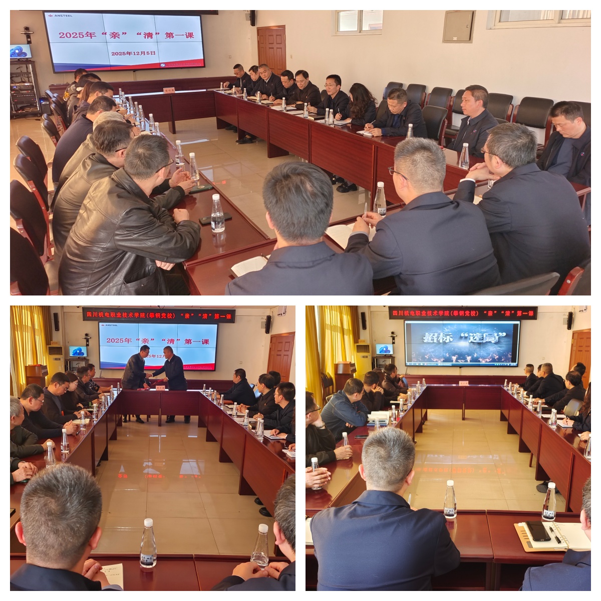 (纪委龚延伦)为规范校企经营往来行为,明晰“亲”“清”合作边界,深入推进清廉校园建设,筑牢廉洁思想防线,12月5日,学校纪委组织开展“亲”“清”第一课警示教育。党委副书记、纪委书记陈勇主持警示教育并作总结讲话。学校关键敏感岗位人员、产教融合项目建设团队教职工代表,以及与学校长期合作的业务相关方代表20余人齐聚一堂,接受廉洁警示教育,凝聚共建共识。