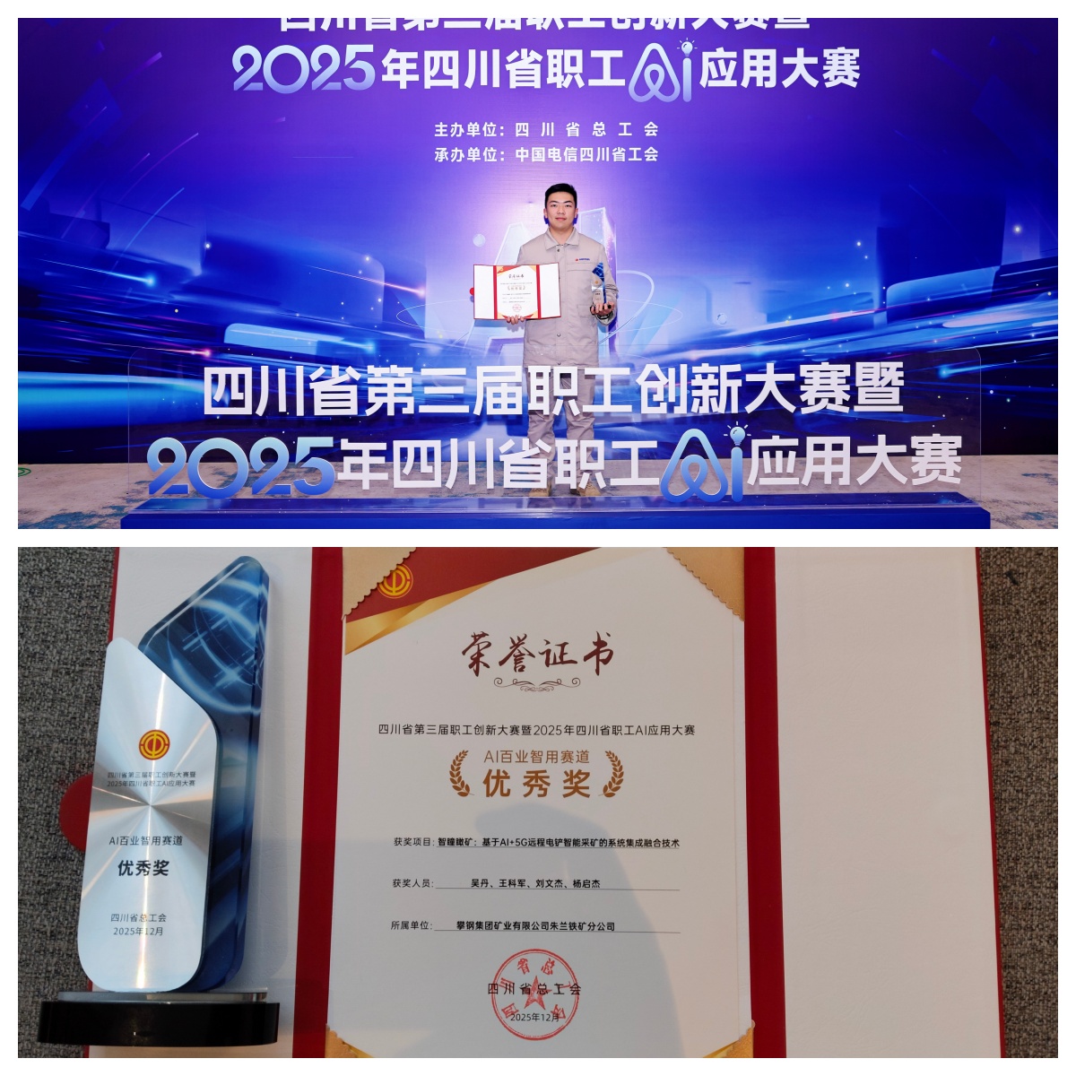 (智能制造学院王永力)日前,四川省第三届职工创新大赛暨 2025年四川省职工AI应用大赛圆满落幕。我校攀枝花市王永力技能大师工作室携手攀钢矿业吴丹国家级技能大师工作室联合组队参赛,智能制造学院2024级机电8班杨启杰同学作为学生代表随队出征。参赛团队凭借扎实的专业功底、前沿的创新设计思维和稳定的现场发挥,在众多强手中脱颖而出,斩获全省第七名,被四川省总工会授予优秀奖,充分彰显了学校深化产教融合、校企协同育人的显著成效。