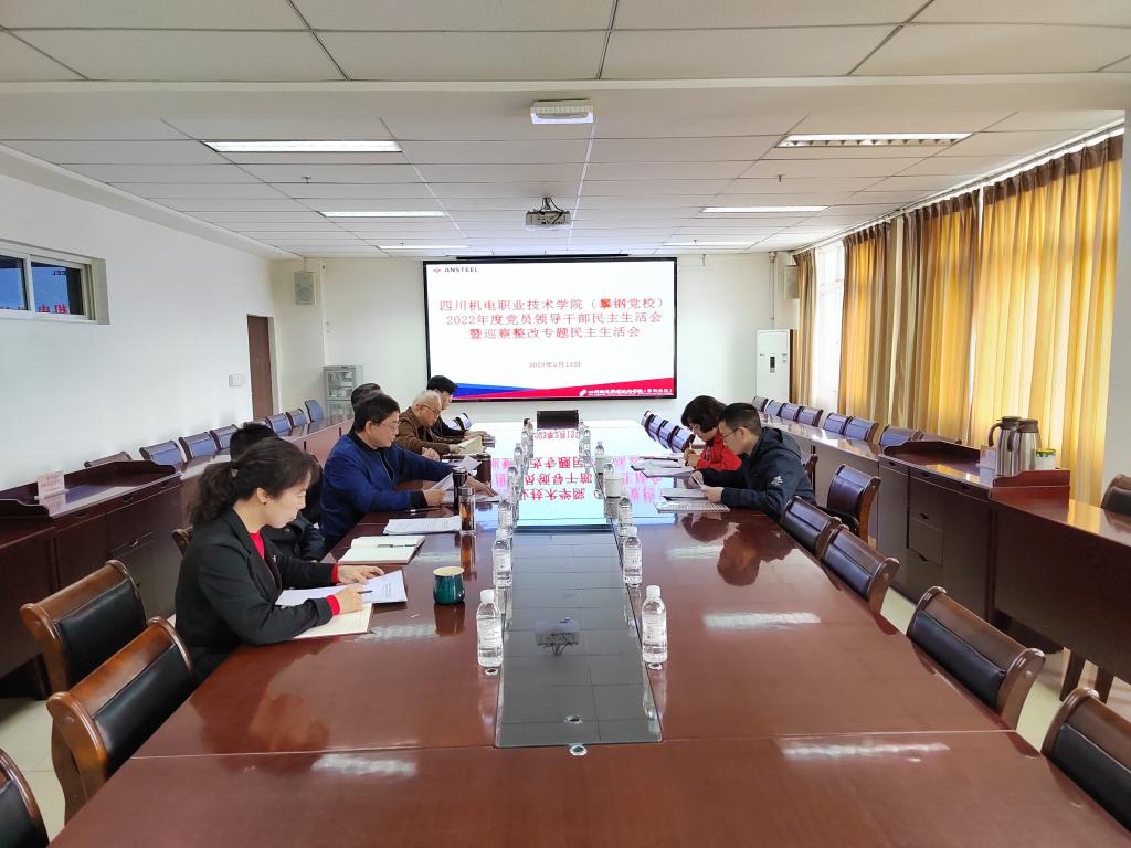 (综合管理部马琪)按照攀钢集团有限公司《关于认真开好2022年度党员领导干部民主生活会的通知》(攀钢委组发〔2022〕75号)要求,并报请集团公司第二督导组同意,2月13日上午,学院在一会议室召开2022年度党员领导干部民主生活会暨巡察整改专题民主生活会。党委书记宋明华主持专题民主生活会,代表学院党委通报学院党史学习教育专题民主生活会整改落实情况、2022年度党员领导干部民主生活会暨巡察整改专题民主生活会前征求意见情况,代表学院领导班子对照检查发言。集团公司党委第二督导组有关同志全程参与民主生活会并对会议进行点评。