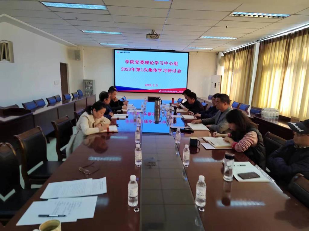 (综合管理部马琪)为切实开好2022年度学院领导班子民主生活会,按照攀钢党委统一安排和部署,为打牢思想基础,以高质量学习为开好学院领导班子民主生活会做好准备,2月3日下午,学院党委在一会议室召开2023年学院党委中心组第1次集中学习研讨会,党委书记宋明华主持学习研讨会,领学习近平总书记在中央政治局民主生活会的重要讲话并讲话,要求学院领导班子成员切实按照要求高质量完成各项学习内容,切实为开好学院领导班子民主生活会做好准备。院长王光涛在研讨环节作主题发言。