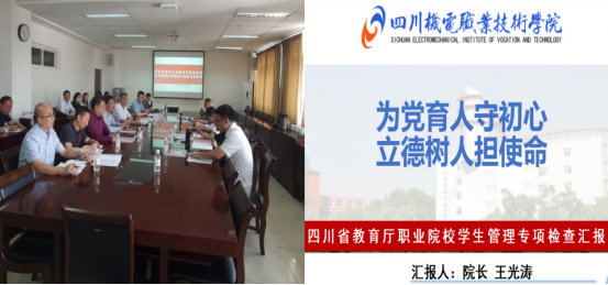 (学生工作处 胡明晏报道)近日获悉,四川省教育厅组织的全省职业院校学生管理专项检查工作全部完成,我院学生管理工作迎检后获专家组“好”评并上报省教育厅。