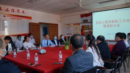 系两位副职做了工作交流发言;系主任和教研室、学生管理室签订信息工程系2021年度契约化工作业绩责任书;表彰了先进个人。