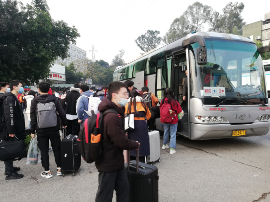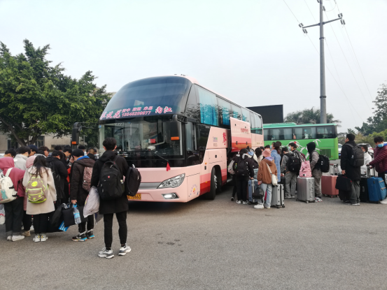 早上8:00左右,一辆辆客运大巴车陆续驶入校园,同学们提着大包小包行李在工作人员引导下排队扫码测温有序上车,脸上无不流露出回家的喜悦之情,同学们纷纷表示:“学校和车站无缝衔接,让我们不出校门就能坐上大巴,省下了打车到客运中心的费用和奔波,学校这项服务太贴心了……”“直通车直接到家,不用中转,减少了疫情感染风险,也不用提着大包小包转车,真的很温暖、很感动哎”