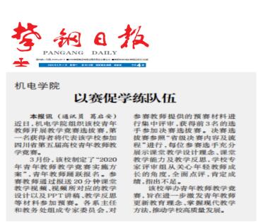 | 2020年5月11日《攀钢日报》刊登《机电学院以赛促学练队伍》一文 |