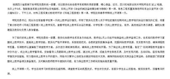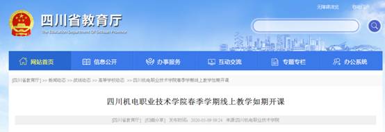 【媒体看学院】2020年3月9四川教育厅网站刊登《学院春季学期线上教学如期开课》