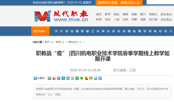 【媒体看学院】现代职教网站刊登《学院春季学期线上教学如期开课》