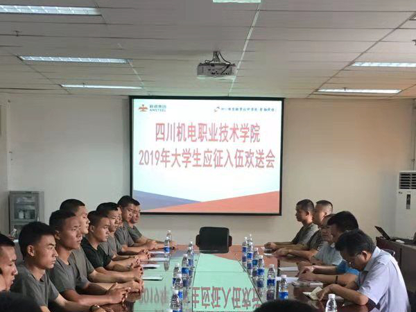 (综合管理部熊小龙)9月9日,我院大学生应征入伍欢送仪式在实训楼隆重举行。学校党委副书记、纪委书记王天堂出席会议并讲话,电子电气工程系主任杨春城以《携笔从戎锤炼坚毅品质,矢志报国彰显热血青春》为题致辞,综合管理部副主任周官强及保卫负责人出席欢送会。