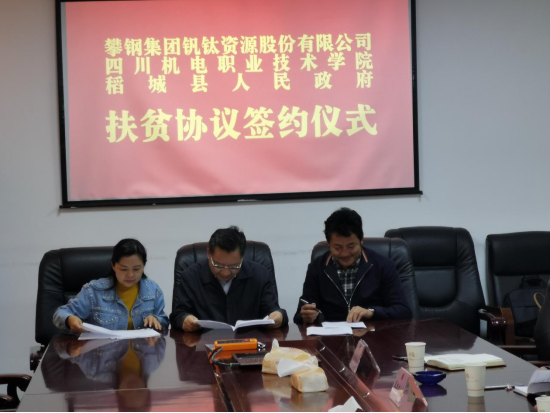 为进一步规范帮扶资金使用和管理,6月26日上午,利用上午实地考察结束、午饭前的间隙,攀钢集团钒钛资源股份有限公司、四川机电职业技术学院、稻城县人民政府在稻城县政务中心二楼会议室举行签约仪式。学院党委副书记、纪委书记、工会主席王天堂,攀钢集团钒钛资源股份有限公司黄利、稻城县委副书记谭成、稻城县委常委总工会主席布邱、副县长思子热太出席签约仪式。王天堂、黄利、思子热太分别代表学院、股份公司、稻城县政府在协议文本签字并交换文本。协议约定各自的权利义务,资金的支付、管理、使用以及违约责任等事宜。签约结束,三方交换文本并握手。出席签约仪式全体人员合影留念。(责编:黄伟)