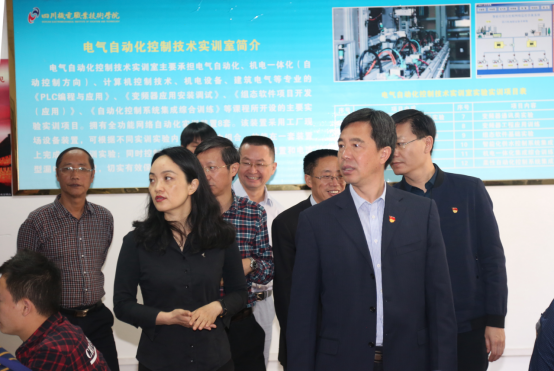 在学院实训大楼前,许志军向攀枝花市各位政协委员介绍了学院发展历程,近年来的办学成果、育人模式及学生就业情况。学院深化校企合作、强化工学结合,培养一大批区域经济发展所需的技术技能型人才,促进了社会经济高质量的发展。调研组一行在许志军的陪同下参观了国家骨干实验实训室。