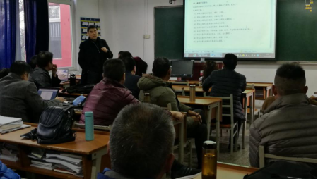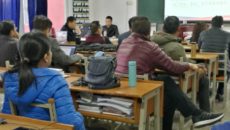 对于教研活动的开展,华建慧针对半期教学检查教研活动中存在的问题进行讲解。他认为搞好教学研究工作,是提高教学质量的一种活动形式,并提出从四个方面着手开展教研活动。首先,转变观念,实现三大转变,一是改变“口头重视,实际忽视”的思想,秉承“教育要改革,教研要先行”的理念;二是改变教研活动是教研组长或教研室主任等少数人的事的认识;三是改变教师们认为“教好课,就可以了,没必要搞教研活动”的现象。他提出,教研活动是针对教学中出现的问题,进行有针对性的探究活动,它体现了集体智慧,是对个人研究的补充,因此它有助于我们更好地进行课堂教学。其次,教研活动的组织可按照四个步骤进行:确立主题;充分准备,组织者不可临时拍脑壳;展开讨论,畅所欲言;总结、出成果。第三,教研活动的组织形式:一是学习教育教学理论,开展如讲座、研讨、培训、自学等形式的学习;二是公开课教学,通过说课,解决课堂教学中存在的问题及改进措施。比如,针对生源基础一年不如一年的问题,针对课堂秩序的问题,针对学生不爱学习等情况,就教学模式、课堂设计进行研讨;三是集体备课,可凝聚集体智慧;四是课题研究。最后,教研活动应具有专题性、全员性、科学性、实效性、创新性,要体现研究性、突出信息化,要深度挖掘,形式多样等特性。