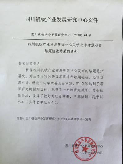 (材料工程系黄兰粉报道)近日,从四川钒钛产业发展研究中心传来好消息,由我院材料工程系主任杨春城负责的开放课题(重点项目)《系统培养基于钒钛资源综合利用专业人才的创新与实践》课题顺利通过结题验收。