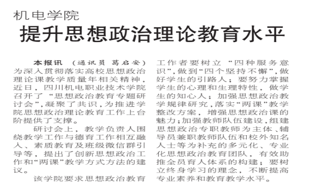 【媒体看学院】2017年12月25日《攀钢日报》刊登《学院提升思想政治理论教育水平》