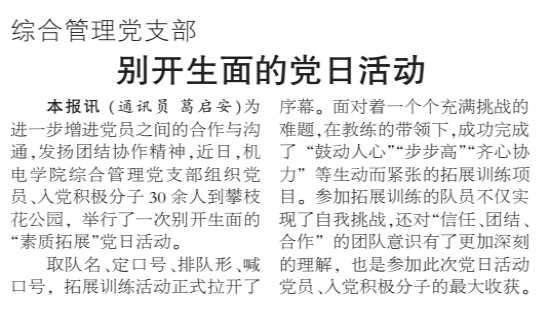 【媒体看学院】2017年12月22日《攀钢日报》刊登《综合管理党支部一次别开生面的党日活动》