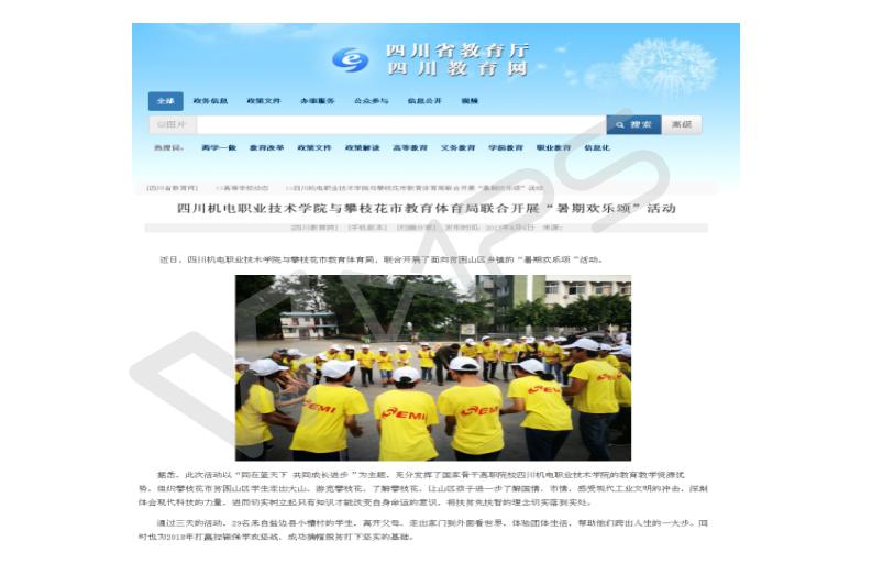 【媒体看学院】2017年8月4日,《四川教育网》刊登《学院与攀枝花教体局联合开展“暑期欢乐颂”活动》