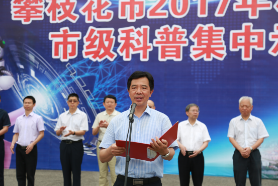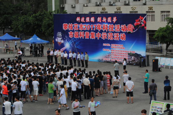 活动仪式上,机电学院党委书记、院长许志军代表学院为活动致辞;市科技和知识产权局局长宣读《市科技和知识产权局市科协市委宣传部市文明办关于命名2017年攀枝花市科普示范学校(基地、社区)的通知》;出席仪式的领导为科普示范学校、基地、社区授牌;副市长刘建明讲话并宣布科技活动周集中科普示范活动开始。