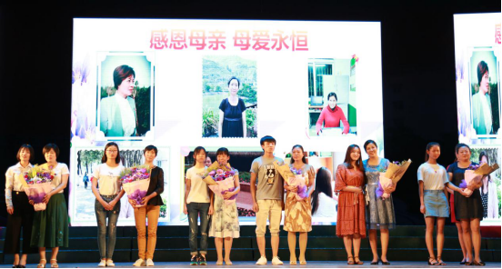 晚会上,最为感人是“感恩”献礼 。坚强母亲曾祥慧、温柔的妈妈杨示美、智慧的妈妈黄兰粉、教子有方的妈妈杨莉华、爱生如子的辅导员妈妈郭秀云、温暖如母亲的宿舍管理员妈妈伊建华等接受了学生的献花。近年来,学院的优秀毕业生刘希、李强、李方勇、谭国华、王宝锋等在各行各业崭露头角,在工作中做出了骄人的业绩。他们感恩母校,向学院老师献礼,感谢母校的教育情谊。