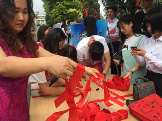 活动刚一开始,生动感人的音乐声就吸引了前来观看的同学,并在红丝带上写上对母亲的祝福!不到半小时,上百条随风飘动的红丝带便缀满枝头,构成了一幅美丽生动的风景画!红丝带上写满了师生对母亲和学院美好明天的祝福语;爱心展板上密密麻麻的贴满了便利贴,祝天下母亲健康开心,祝母亲永远年轻漂亮,虽然这些便利贴上的语言简洁、朴实,却蕴含对母亲的浓浓爱意......;诗朗诵、手语操“烛光里的妈妈”诠释了“慈母手中线,游子身上衣,临行密密缝,意恐迟迟归”的伟大母爱!