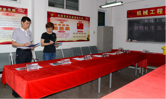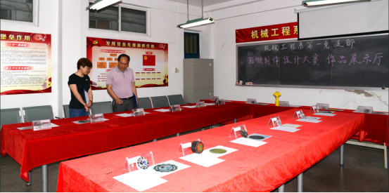 5月11日,机械工程系学生第一支部在三教102会议室,隆重展出在校17个班级的班徽设计作品, 学院党委副书记、工会主席畅嵘,学生处处长王君成莅临现场观摩指导,并对参赛作品就作品外观设计给予评分。