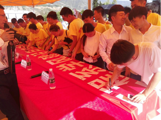 仪式上,畅嵘宣布材料工程系“学风建设月”正式启动,1200余名师生庄严宣誓,高昂洪亮誓言响彻校园。仪式结束前,在优美动听的校歌中,同学们纷纷在横幅上进行签名,积极响应材料工程系倡议,踊跃参与学风建设。