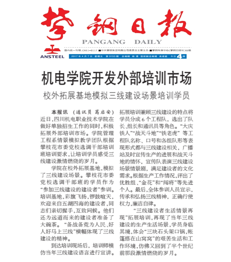 【媒体看学院】4月7日《攀钢日报》刊登《学院开发外部培训市场》