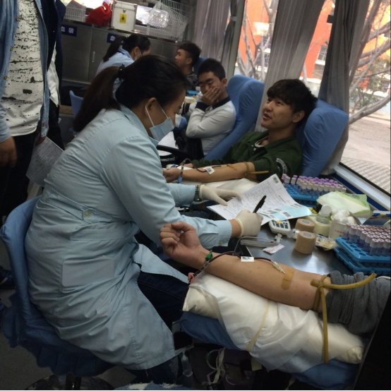 金江校区一教学楼的献血车前,前来献血的师生排起了长龙,一股无偿献血的爱心热潮在学校澎湃而起,同学们积极配合着填表,化验,抽血等一系列检查,所有流程都在工作人员协调下井然有序的进行,随后他们为志愿者们送上一杯热水和关怀的问候,让爱心也温暖着每一位志愿者们,一股股青春热血,一颗颗爱心满怀,使每位同学心中充满了光荣和自豪。