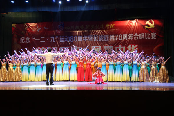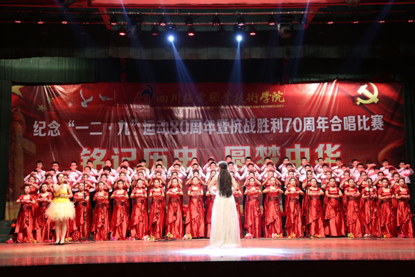 2015年12月8日18时30分,学院马家田校区风雨大棚响起了嘹亮的歌声,由学工部主办的纪念“一二·九”运动80周年暨抗战胜利70周年合唱比赛隆重开幕。出席本次大会的嘉宾有学院党委书记、院长许志军、党委副书记、工会主席畅嵘,副院长熊斌,副院长程龙泉,纪委书记汤永翔,院长助理李胜。各系部的书记、辅导员老师以及马家田和金江的部分同学也到场观看比赛。