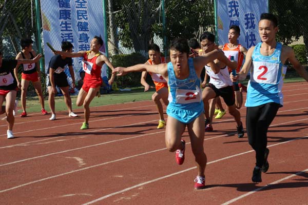 图为市七运会上男子4乘100接棒瞬间