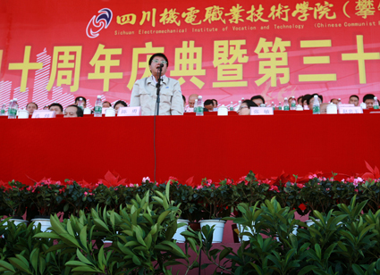 本报讯(张跃华、学生记者李静松报道)从敲响攀钢职业教育第一声上课铃声,到今天的全国100所国家骨干高职院校建设单位,四川机电职业技术学院(攀钢党校)历经40年风雨,书写下一段传奇。11月8日下午,我校建校40周年庆典暨第31届田径运动会开幕式在学校运动场隆重举行。攀钢老领导赵忠玉,集团公司领导陈勇、付伟,市政府副市长张敏出席。党委书记、院长、党校常务副校长许志军致辞,党委副书记袁雪良主持。院领导熊斌、程龙泉、张英民、李胜等在主席台就座。(责编:马琪