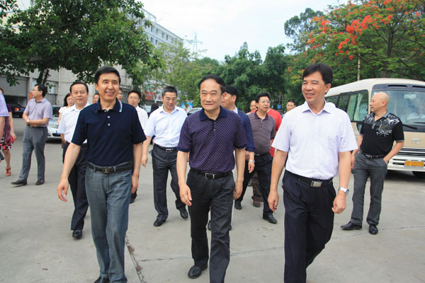 图为赵振铣副主席(中)在张治杰(左)、许志军(右)等陪同下参观学院。