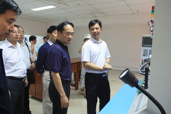图为赵振铣副主席(中)参观学院实训中心。左为张治杰,右为许志军。