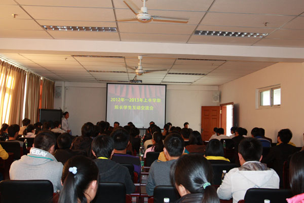 本站讯(学生记者黄兰霞)为了加强与学生之间的交流和沟通,更好地回应同学们各方面的诉求,12月21日下午,2012年度“院长学生交流会”在学院第三会议室进行,副院长熊斌、院长助理张英民、教务处、招生就业处和总务处等相关部门负责人出席交流会,金江、马家田两大校区的学生组织代表及各系(部)2011级、2012级学生代表共计60余名同学参加了交流会。(责编:马琪)