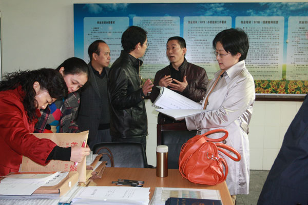 图为专家组在副院长程龙泉(右一)陪同下检查设在学院的攀枝花市东区创业孵化园。