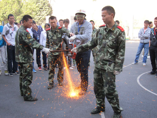 本站讯(金江校区学生记者张羽军)11月9日是全国“11.9消防日”。为普及消防知识,确保校园平安,11月9日当天,学院金江校区保卫科组织全体学生干部到攀枝花市武警消防第四中队观看消防演练并学习防火安全知识。消防演练结束后,武警消防战士为同学讲解了各种现代化消防应急工具的简单使用,并细心讲解了常见的火灾应急措施。