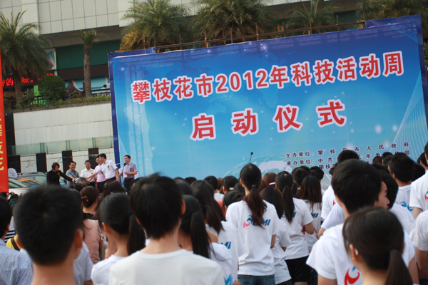本站讯(马琪报道)5月19日上午,由攀枝花市人民政府举办的2012年攀枝花市科技活动周启动仪式在市中心广场举行。学院精心准备6块展板,由副院长程龙泉带队参加启动仪式,全面展示学校。