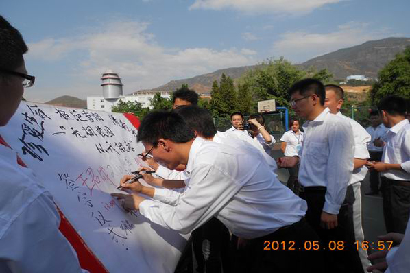 本站讯(学生记者黄兰霞 张彤)5月8日下午,“2012年校园无烟月”活动启动仪式在学院马家田校区篮球场举行。各系部、学生组织学生代表参加。学生代表宣读了《建设无烟校园倡议书》,青年教师代表带领学生宣誓:远离烟草、珍爱生命、健康生活,建设清新无烟校园。仪式最后,参加启动仪式师生在“珍爱生命 拒绝吸烟 清新校园”主题板上签名,支持校园无烟月活动。