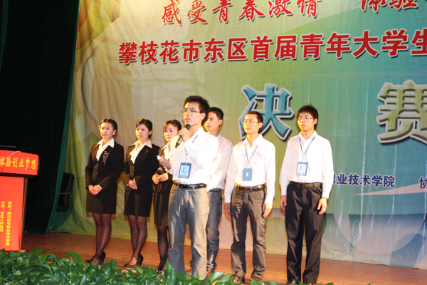 本站讯(马琪、张跃华报道)学院承办的东区首届青年大学生创业设计大赛决赛,4月20日晚在东区文化馆礼堂举行。市委副书记赵辉,东区区委副书记、区长陈忠恕,市人力资源与社会保障局局长刘忠杰等市、区领导与党委书记、院长许志军等学院领导一起出席观看决赛。副院长程龙泉、科研处处长郭云生应邀担任决赛评委。学院 “迷你高尔夫”项目代表队荣膺一等奖、“生态有机蔬菜”项目代表队荣获二等奖、“钢城攀枝花网”项目代表队获得三等奖。