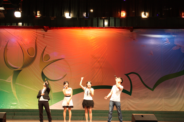 本站讯(张跃华 学生记者沈诗城 张彤 黄兰霞)为纪念五四运动九十三周年,庆祝共青团成立九十周年,4月18日、19日晚院团委分别在马家田、金江校区举行文艺汇演,拉开了2012年学院“第十一届五四文化月”活动的帷幕。院领导许志军、袁雪良、熊斌、程龙泉、张英民、李胜等分别在两个校区与师生员工一起观看演出。应读者要求,编发一组图片。(责编:马琪)