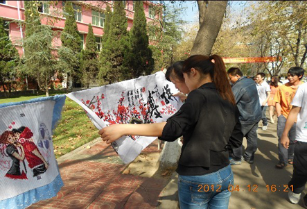 本站讯(学生记者 黄兰霞)4月12日下午,院团委在学院马家田校区举办2011—2012学年“假期四个一”作品展,共展出优秀学生作品180余件(幅),其中手工制70余件、绘画40余幅、书法作品40余幅、摄影作品30余件。