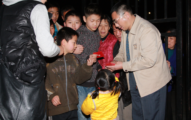 党委副书记、工会主席袁雪良(右)在派发红包。