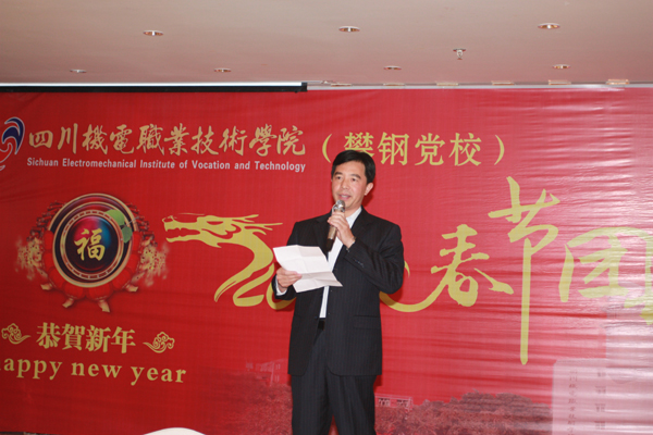 本站讯(马琪报道)1月6日,学院举行2012年春节团拜会,党委书记、院长许志军代表学院发表新年致辞,党委副书记、工会主席袁雪良主持团拜会,副院长熊斌、程龙泉,院长助理张英民、李胜出席团拜会。学院科级以上(主办、教研室主任、学生党支部书记)领导干部、2011年受到各级表彰的先进人物、学科(技术)带头人、市人大代表、政协委员、民主党派代表90余人参加团拜会。(团拜会图片均为张跃华摄)