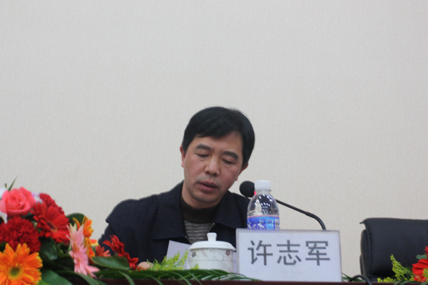 图为大会会场,主席台左起:贺永德、张英民、熊斌、许志军、李胜、王君成。