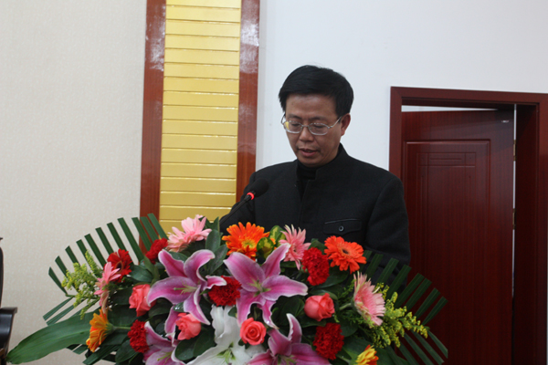 图为学工部长王君成在作大会发言。