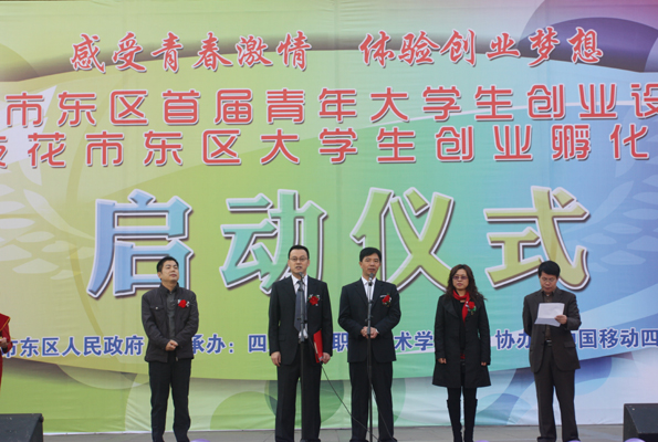 | 图为东区区委常委、常务副区长李双全宣布“攀枝花市东区首届青年大学生创业设计大赛暨攀枝花市东区创业孵化园建设”启动。