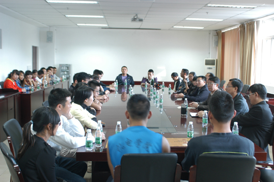 图为党委书记、院长许志军在讲话,祝贺同学们取得好成绩,感谢他们为学院争了光,勉励他们发扬优良作风,早日成材。