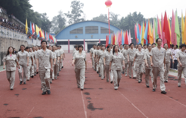 图为教职工方队入场。
