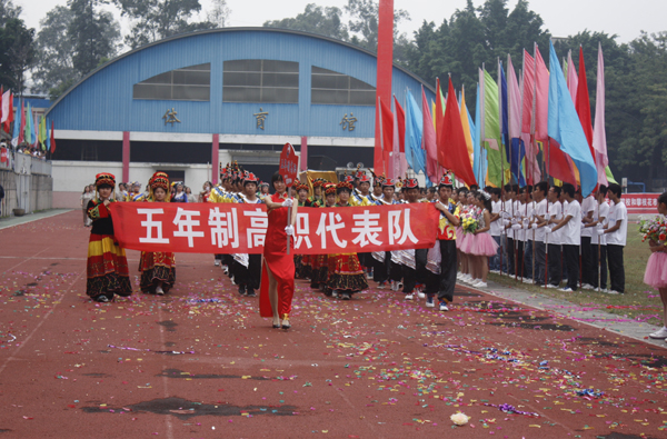 图为在凉山农校就读的五年制高职学生代表队入场