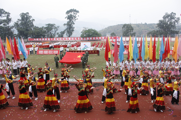 图为在凉山农校就读的五年制高职学生代表队入场表演。
